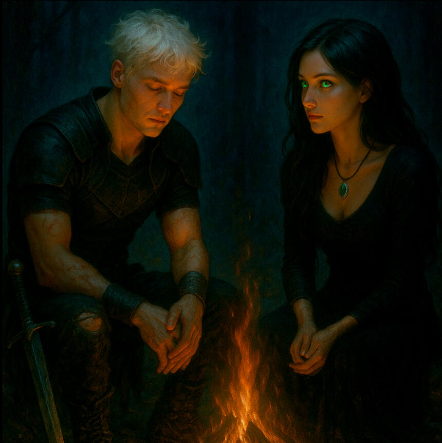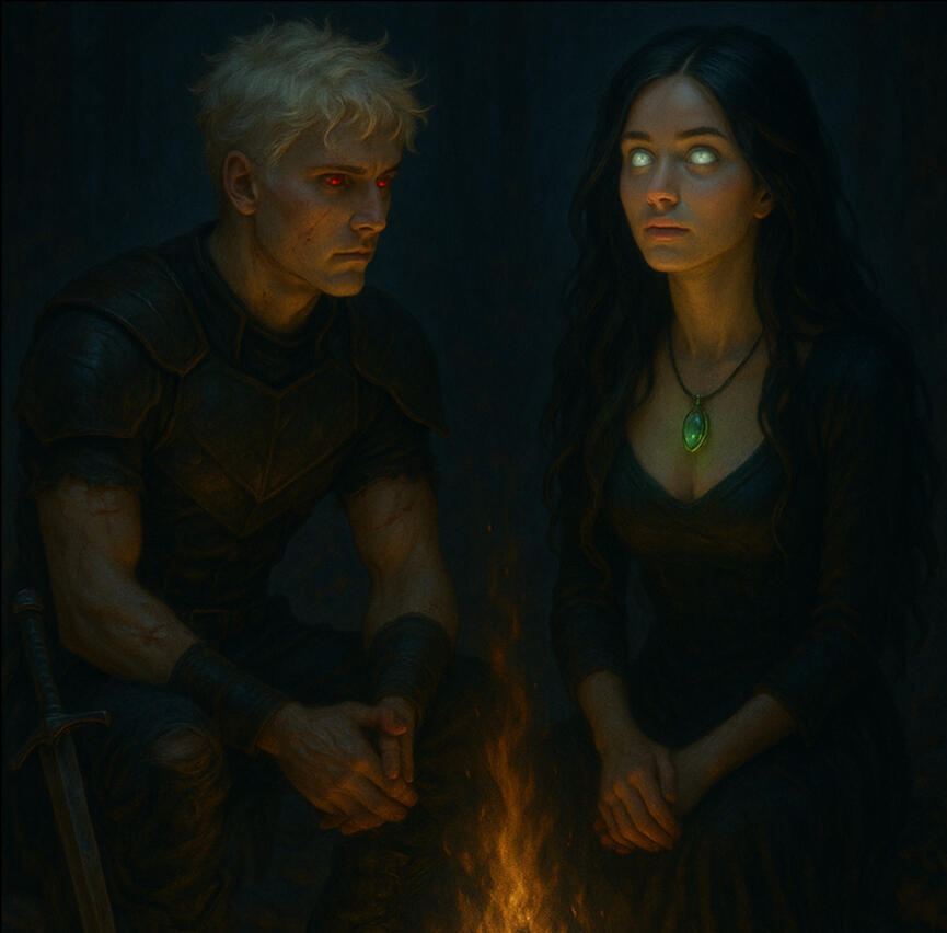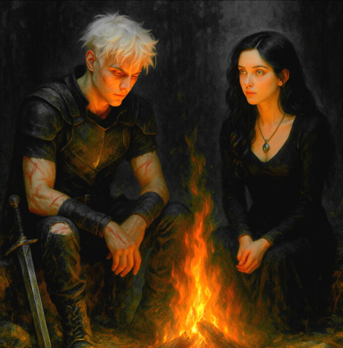 We locked eyes. Hers—green, calm, deep-rooted in something ancient and kind.“Red,” she said, without flinching.“Correct.” I smiled faintly, then dropped my gaze back to the flames.“They found me in the middle of the night. No guardian. Just me, collapsed on the orphanage steps. I woke up, and my vision… it scared them.”I looked back at her, letting a flicker of that devilish glint show.She didn’t blink. She just looked.“That’s…”“Terrible. I know.” I finished it for her.“There’s never been anyone, really. I was thrown into Nightwatch training at twelve.”“And now?” I gestured vaguely to the woods, to her. “Now I’m here.”She studied me. “So… they just forced the orphans into that life so young?”I gave a small shrug. “It’s more complicated.”“I could’ve stayed until I was fourteen. But that just meant two more years of being beaten down—wasted years—before being thrown to the wolves anyway.”I smirked faintly. “Apparently, if we live that long, we’re ready to face the world.”